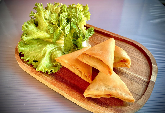 À chaque bouchée, le contraste entre le croquant de la pâte et la tendreté de la farce offre un plaisir immédiat. Les arômes sont riches, légèrement épicés et parfaitement équilibrés. Servis chauds, les quatre samoussas composent une entrée gourmande, à la fois parfumée, croustillante et réconfortante.